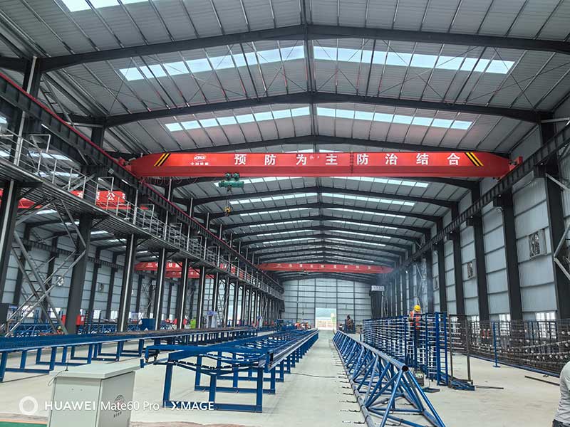 桥式起重机是横架于车间、仓库和料场上空进行物料吊运的起重设备。由于它的两端坐落在高大的水泥柱或者金属支架上,形状似桥。桥式起重机的桥架沿铺设在两侧高架上的轨道纵向运行,可以充分利用桥架下面的空间吊运物料,不受地面设备的阻碍。它是使用范围最广、数量最多的一种起重机械。