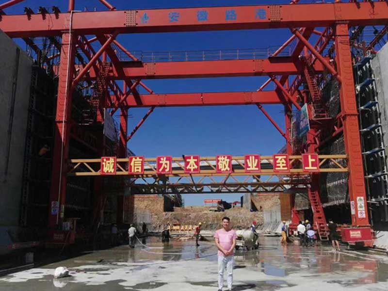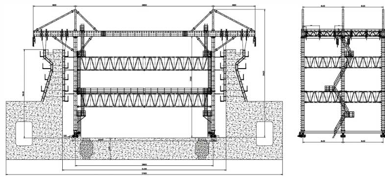 移动模机是船闸施工设备。自身吊挂模板,可以自行走,是一种先进的智能施工设备。