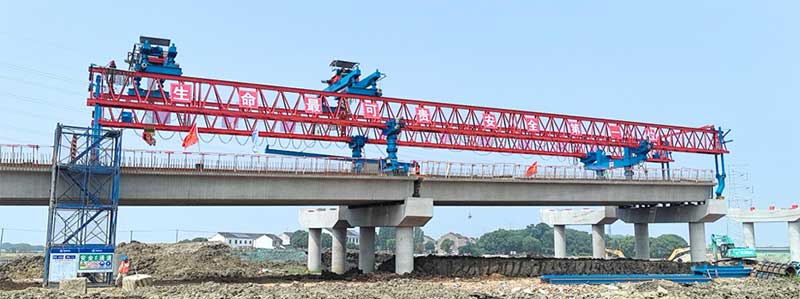 JQJ系列纵向架桥机是用于混凝土桥梁安装的专用设备。该设备适用于多种跨径的T型梁、各类箱梁以及板梁的安装作业。该系统能够满足在最大纵向坡度4%以及半径超过450米的曲线桥上的安装需求。通过适当的调整和操作,也可以安全地实现在更小曲线半径上的安装。