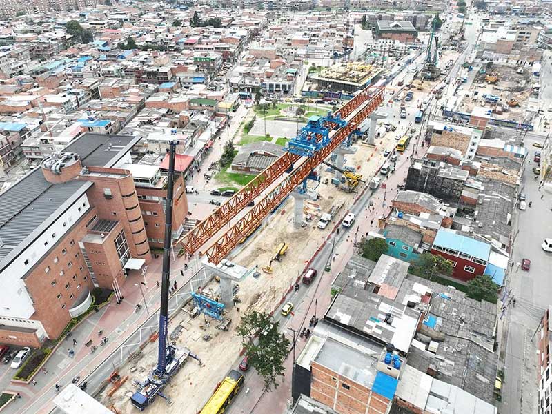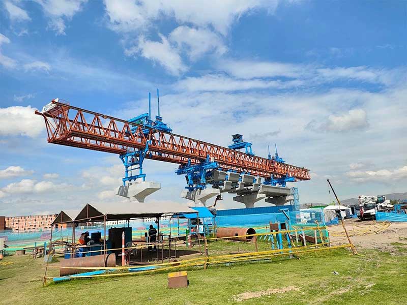 JP700-45节段拼装架桥机用于哥伦比亚波哥大地铁一号线项目。覆盖架设45m及以下跨度,全悬挂能力700t,由主桁架梁、支承结构、起重系统、下放系统、液压系统、电气系统和安全监控系统等七大部分组成。