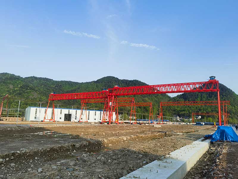 门式起重机(又称龙门起重机)是桥架通过两侧支腿支撑在地面轨道上的桥架型起重机。在结构上由门架、大车运行机构、起重小车和电气部分等组成。 双梁桁架门式起重机 使用型钢焊接而成的结构形式,优点是造价低,自重轻,抗风性好,拆装方便。但是由于焊接点多和桁架自身的缺陷,桁架梁也具有挠度大,刚度小,工作级别相对较低。较常用于预制梁场。